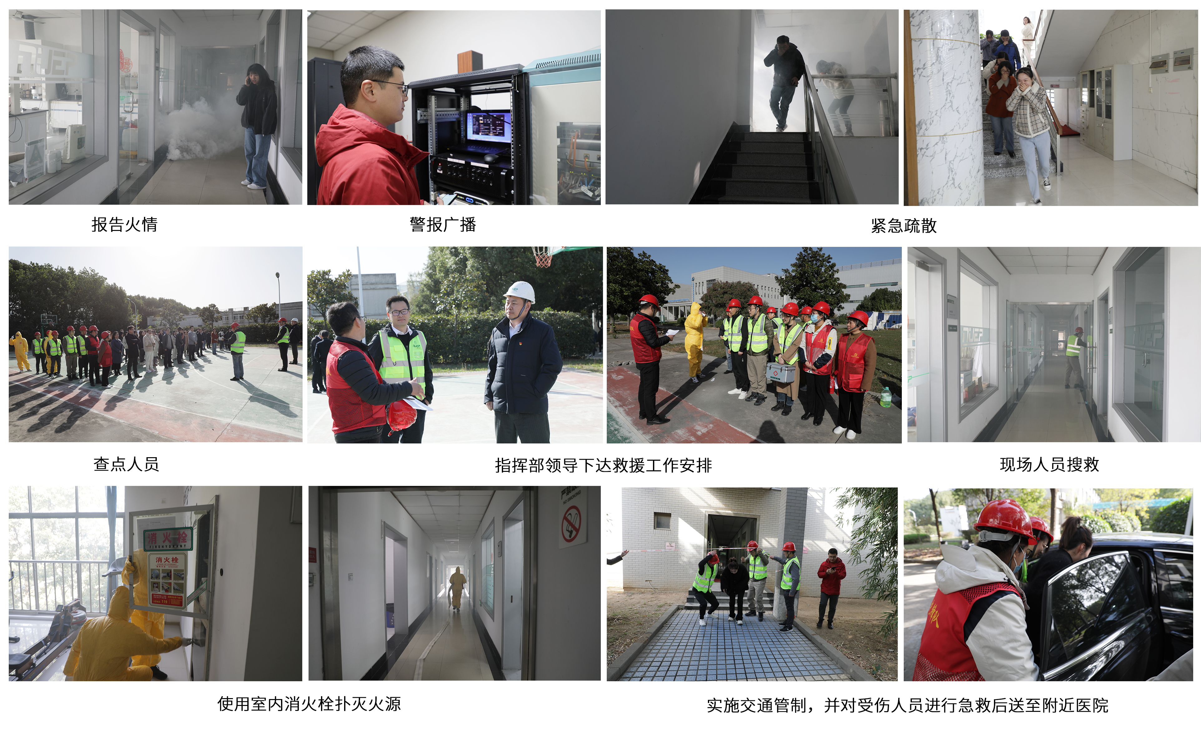 上午9:30分,模擬辦公樓三層實(shí)驗(yàn)室突發(fā)火情,火災(zāi)呈現(xiàn)蔓延趨勢(shì),接到險(xiǎn)情報(bào)告后,指揮部迅速啟動(dòng)應(yīng)急預(yù)案,各應(yīng)急小組從火警廣播、人員疏散、人員救援、火災(zāi)撲救等全流程、全環(huán)節(jié)進(jìn)行“模擬實(shí)戰(zhàn)”。9點(diǎn)32分,各部門(mén)人員按照疏散路線、采用合理動(dòng)作有序撤離辦公樓并在指定安全地點(diǎn)集結(jié);9點(diǎn)33分,應(yīng)急隊(duì)伍緊急集合完畢,并進(jìn)入現(xiàn)場(chǎng)開(kāi)展交通警戒、人員搜救和火災(zāi)撲救等行動(dòng);9:45分,現(xiàn)場(chǎng)火勢(shì)撲滅,應(yīng)急隊(duì)伍返回集結(jié)點(diǎn)并向指揮部匯報(bào)應(yīng)急救援結(jié)果。